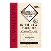Diamond Naturals Indoor for Hairball Control Cat Formula Dry Cat Food was developed to help your cat maintain an ideal, lean body condition, this formula will help your cat live a happy, healthy life. Includes Omega-6 and Omega-3 fatty acids to keep the skin and coat healthy and shiny which helps control and reduce hairball formation.