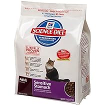Hills's Science Diet is the #1 choice of U.S. veterinarians to feed their own pets. Hill's Science Diet Adult Sensitive Stomach cat food provides precisely balanced nutrition to promote gentle digestion. It is made with high quality ingredients and an ideal combination of nutrients and clinically-proven antioxidants for superior overall health. Its high quality protein and gentle fiber ensures appropriate nutrient absorption and easy digestion. Recommended for adult cats 1 to 6 years of age with sensitive stomachs but not recommended for kittens, pregnant or nursing cats.