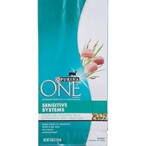 Purina ONE Sensitive Systems Dry Cat Food The Purina ONE Sensitive Systems Dry Cat Food is formulated with real turkey and eggs which promote strong muscle. It contains digestible rice and oat meal meant for cats with sensitive stomachs. The diet comprises Omega Fatty Acids, Vitamin E for a healthy skin coat and antioxidants for a good immune health. Features